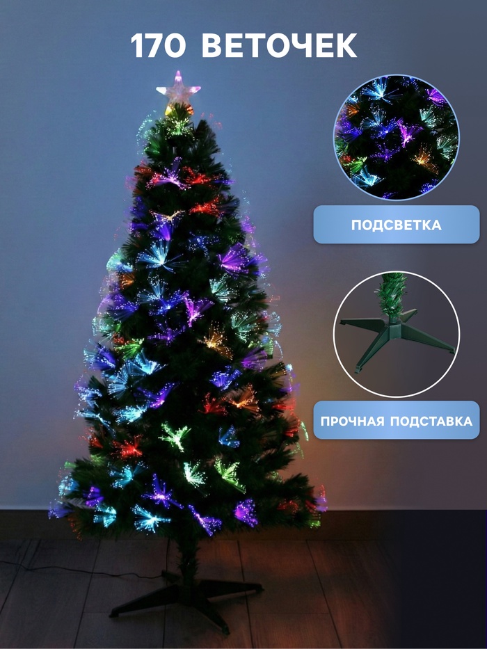 Ёлка светодиодная «Пучок радужный» 150 см, диаметр нижнего яруса 72 см, 170 ПВХ веток, мигание, свечение мульти — Характеристики