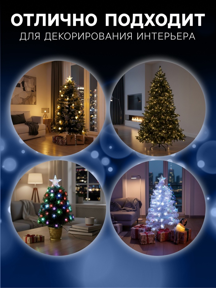 Светодиодная ёлка с радужным свечением становится центром новогоднего интерьера, наполняя пространство живым светом и ощущением праздника. Мультицветная подсветка с режимом мигания создаёт эффект мягкого перелива, благодаря которому ёлка выглядит нарядно даже без дополнительных украшений.