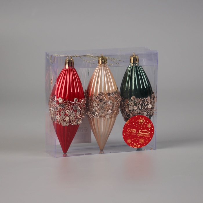 - Комплект — 3 украшения, достаточно для создания тонкого акцента на ёлке или в подарочной упаковке без давления на дизайн.