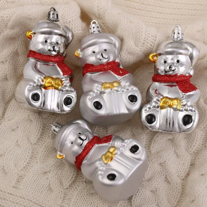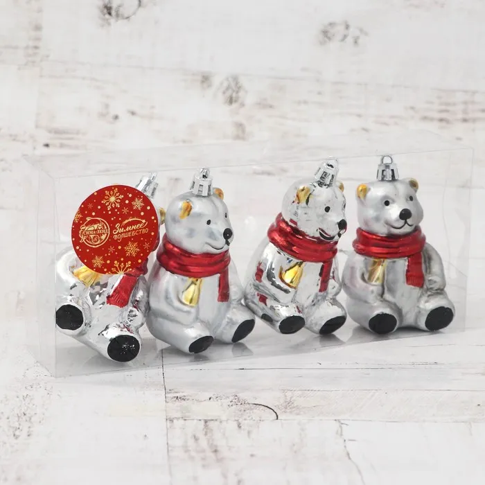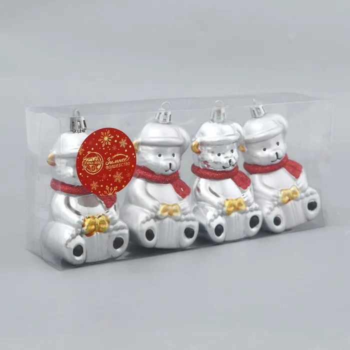 Ёлочная игрушка в виде мишки в шарфике — это тёплый и душевный акцент для новогодней ёлки. Набор из 4 серебристых фигурок (8 см в высоту) с рисунком добавляет декору нотку уюта, не нарушая праздничной строгости. Эти игрушки подойдут как для семейного украшения, так и как милый подарок к зимним праздникам.