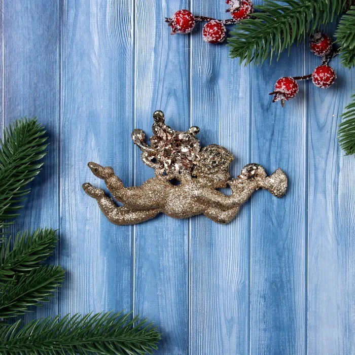 Ёлочная игрушка "Ангел с трубой блеск" 13х7 см, золото — Характеристики