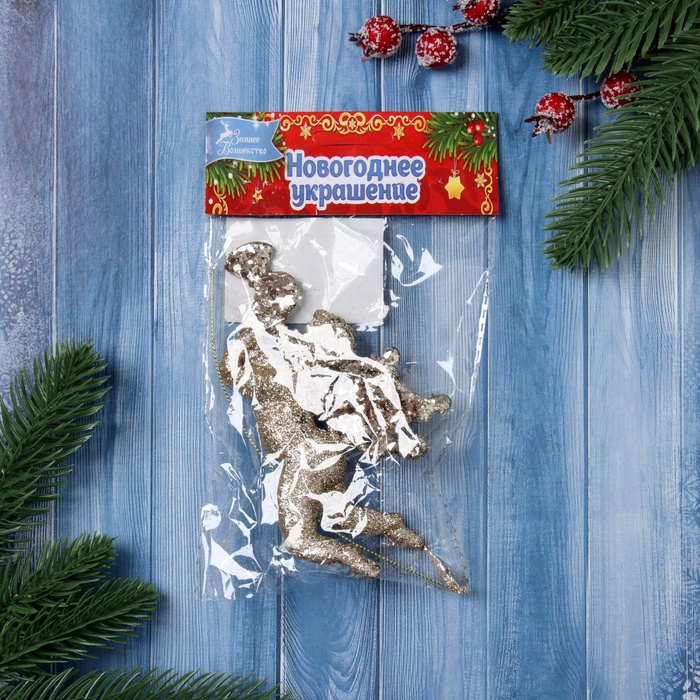 Ёлочная игрушка "Ангел с трубой блеск" 13х7 см, золото