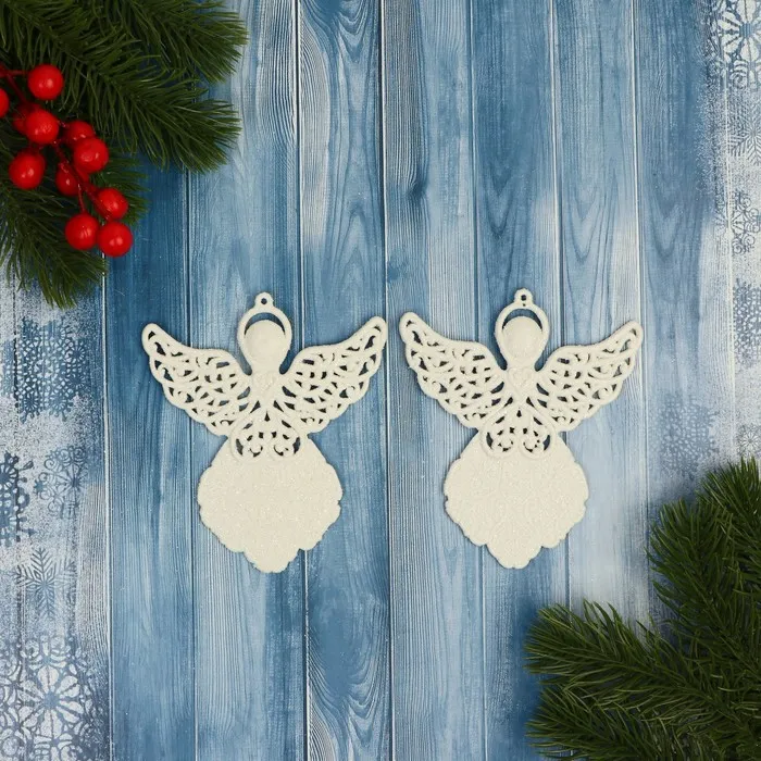 Ёлочная игрушка "Ангелочек люкс" (набор 2 шт) 9х11 см, белый