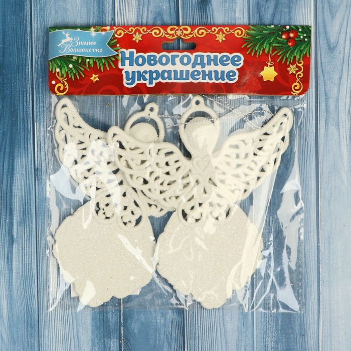 Ёлочная игрушка "Ангелочек люкс" (набор 2 шт) 9х11 см, белый — Характеристики