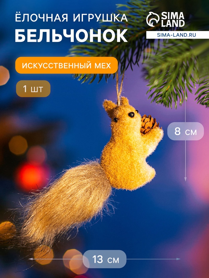 Ёлочная игрушка «Бельчонок» 8×13 см, бежевый — Характеристики