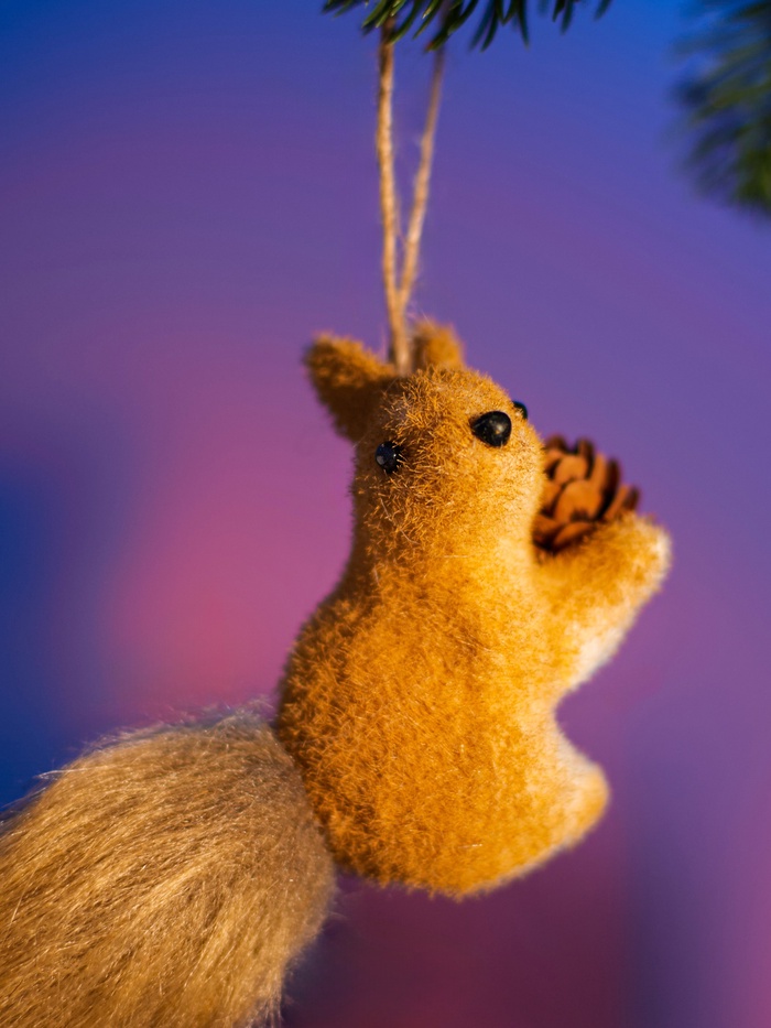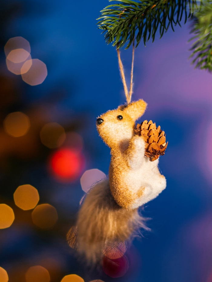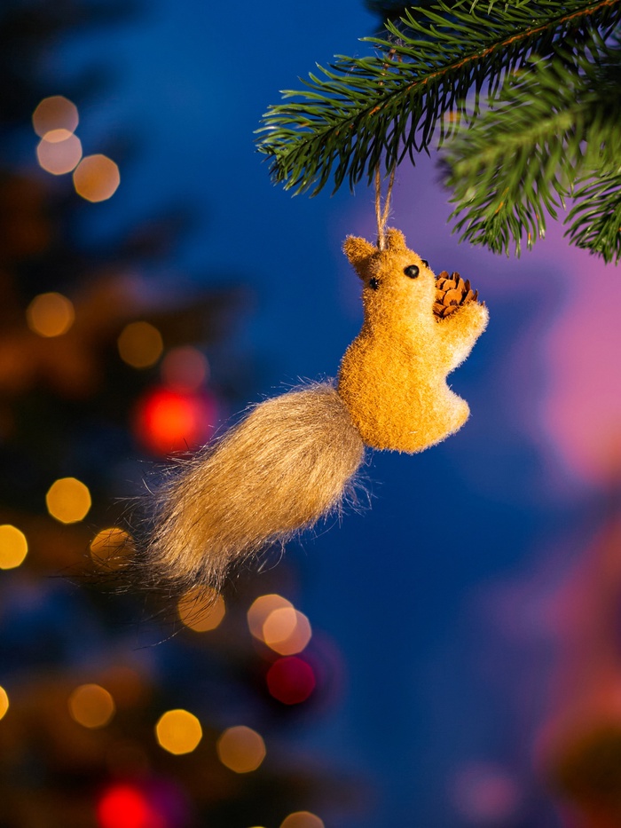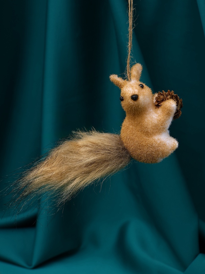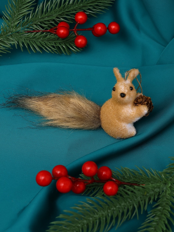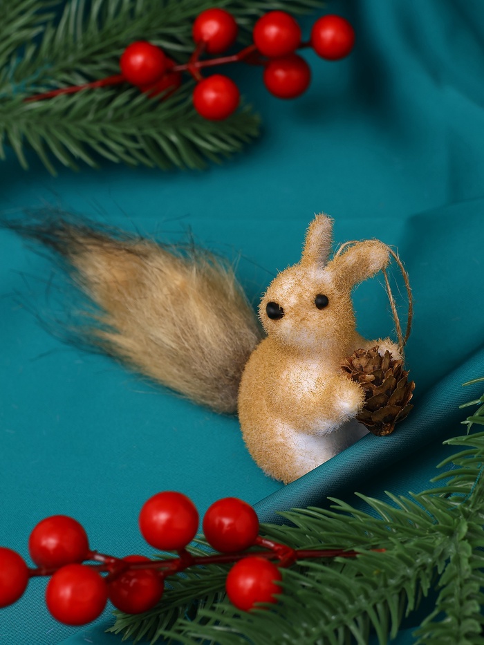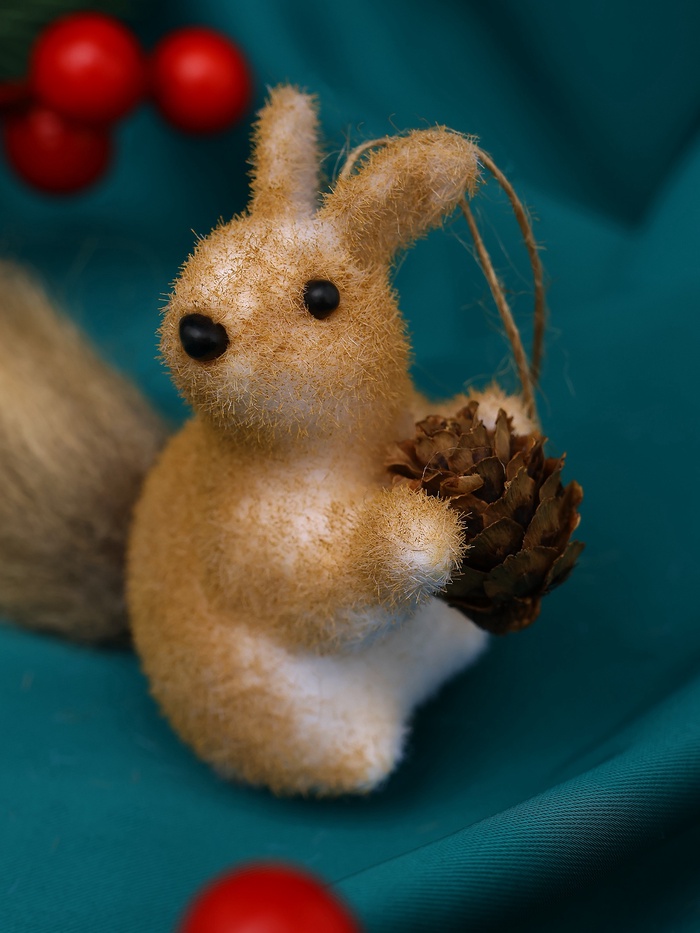 Фигурка белочки помогает внести в пространство уют и природную нежность. Её мягкая фактура и спокойный цвет подчёркивают домашний комфорт и праздничное настроение.