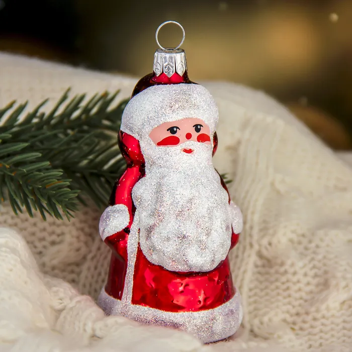 Эта игрушка делает ёлку частью вашей личной зимней истории. Образ Деда Мороза и мягкие линии работают вместе, чтобы передать атмосферу чуда, семейного тепла и ожидания праздника. Используйте её как центральный элемент или как фоновое дополнение — одинаково хорошо усиливает дух Нового года и предпраздничное ожидание.