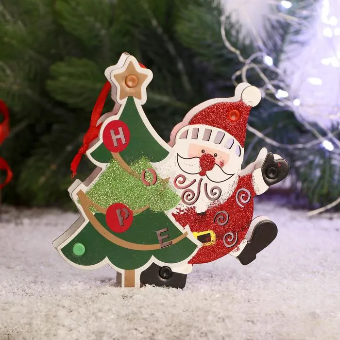 Елочная игрушка деревянная «Зимняя ель» МИКС