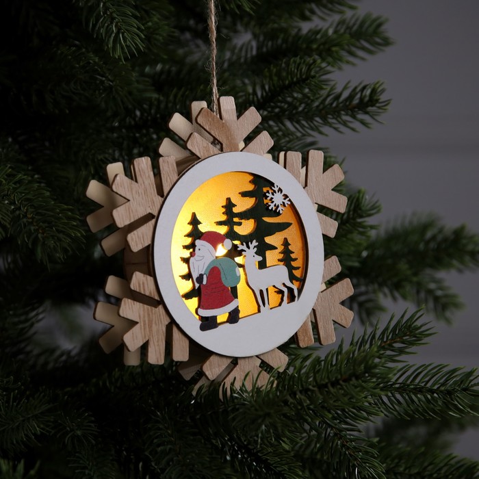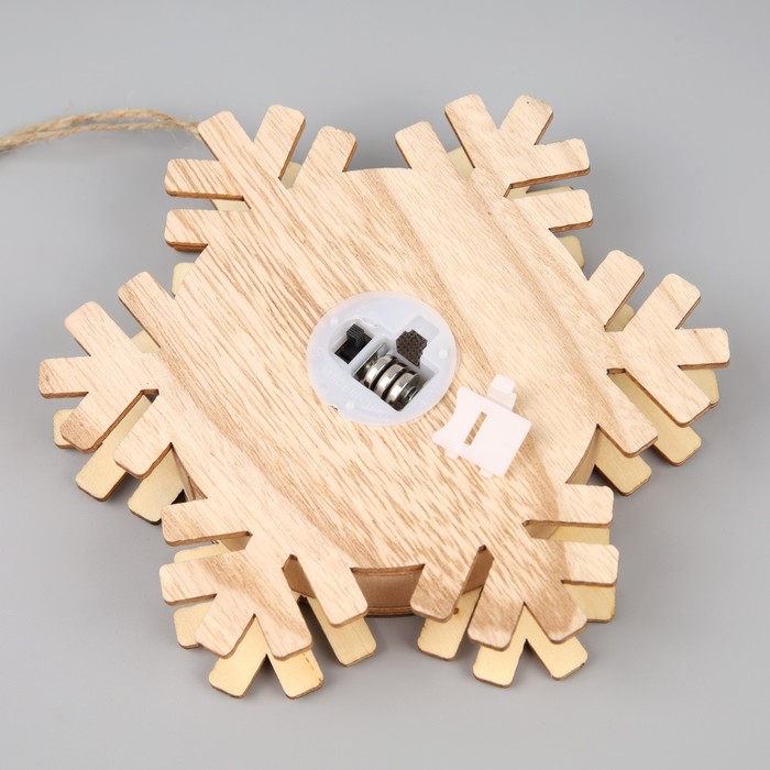Сделанная из натурального дерева, игрушка дарит ощущение тепла и уюта. Мягкое белое свечение светодиода подчеркивает магию зимней ночи, наполняя Ваш дом нежным мерцанием. Удобство использования обеспечивается питанием от батареек, что позволяет повесить её на любую ветку Вашей ёлочки или украсить ею праздничный интерьер.