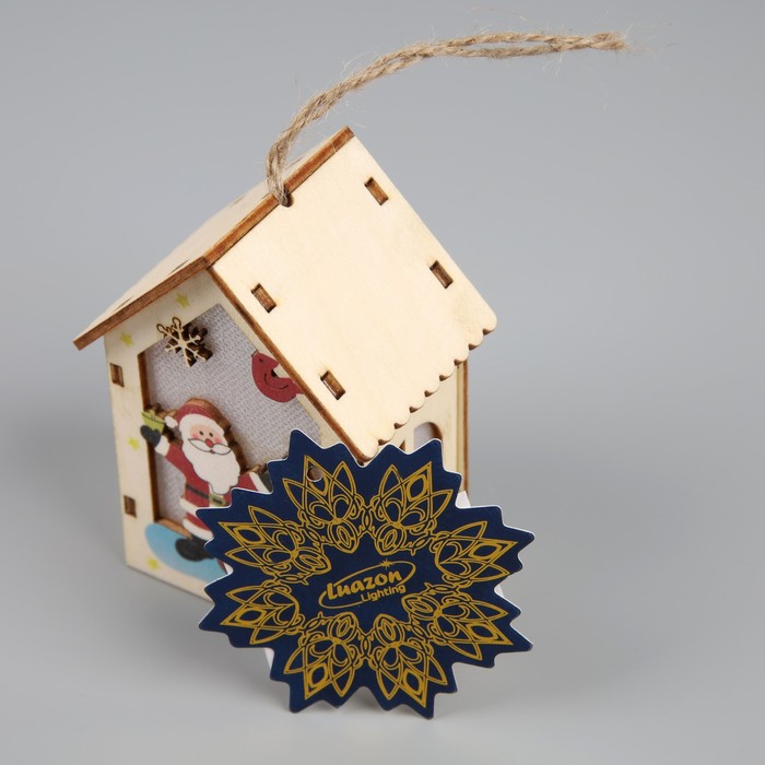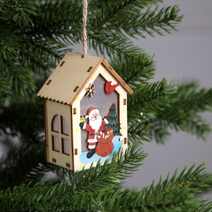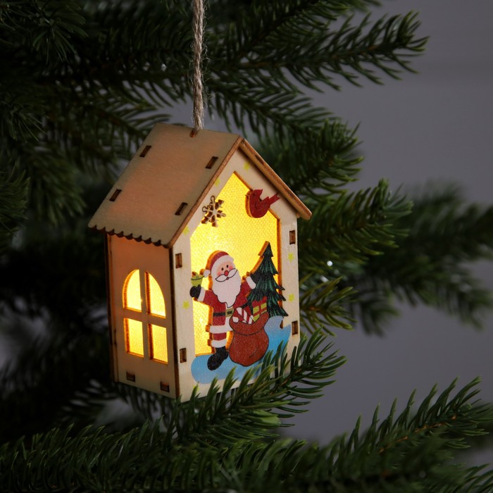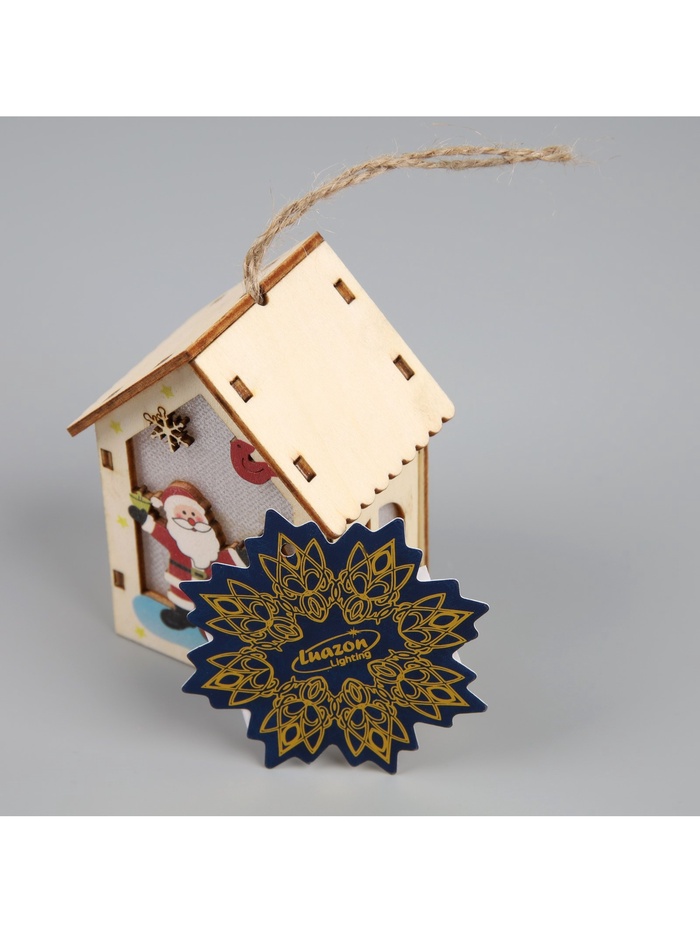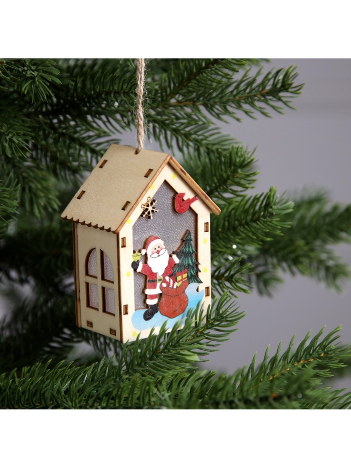 Изготовленная из дерева, подвеска освещает пространство тёплым белым сиянием, создавая уютную и праздничную атмосферу. Благодаря встроенному светодиоду, работающему от батареек, игрушка может быть размещена в любом месте, будь то ветки ёлки или полки в вашем доме. Её размеры 4.5x5x5.6 см делают удобной для размещения и достаточно заметной.