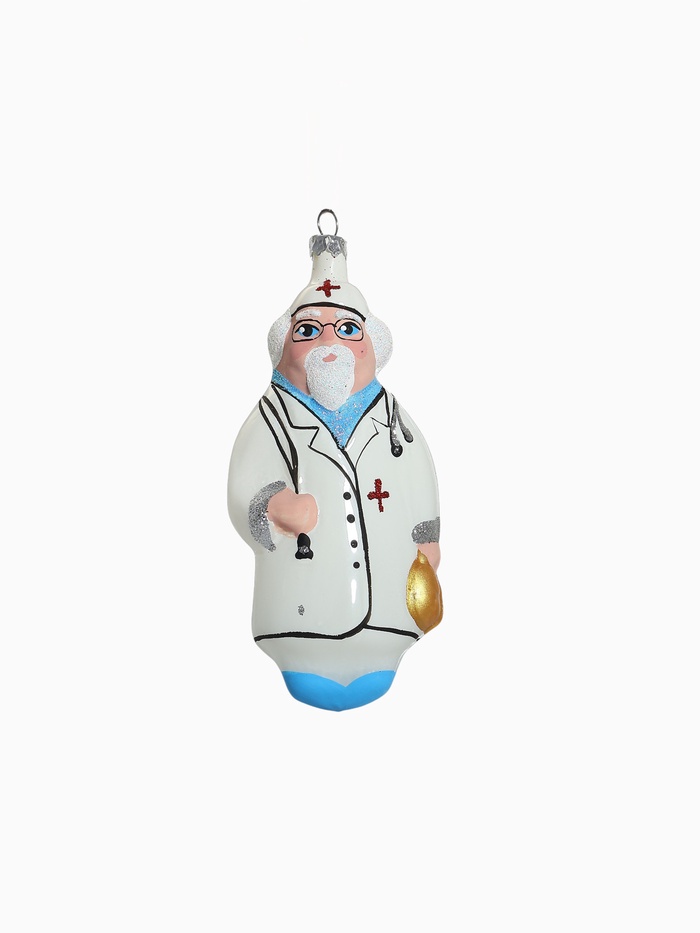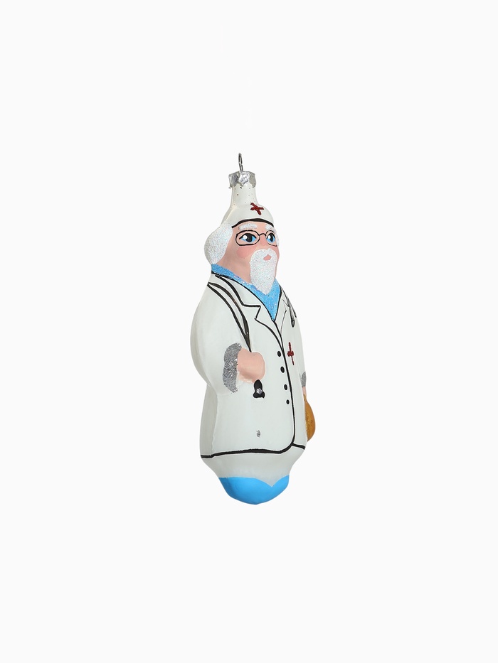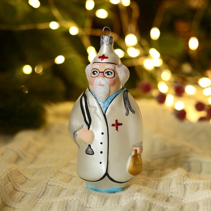 Эта оригинальная ёлочная игрушка в форме доктора станет ярким акцентом в вашем новогоднем декоре. С высотой 13 см, она привносит в атмосферу праздника нотку веселья и ностальгии, напоминая о добрых советских традициях. Серебристый цвет, в котором выполнена игрушка, придаёт ей элегантность и утонченность, а детализированный рисунок добавляет индивидуальности и характер.