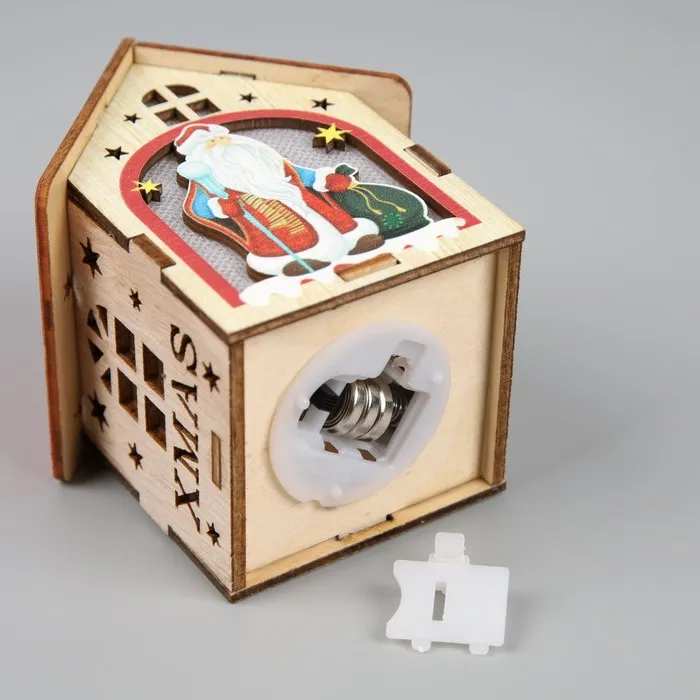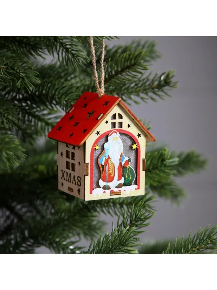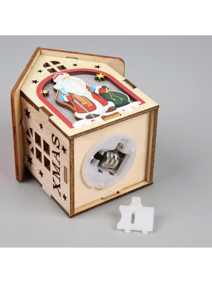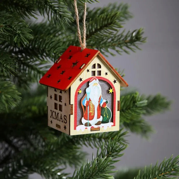 Изготовленный из натурального дерева, домик с Дедом Морозом источает тёплое белое сияние, создавая атмосферу уюта и волшебства. Встроенный светодиод, работающий от батареек, позволяет разместить игрушку в любом месте — будь то ветки ёлки или полки в вашем доме. Компактные размеры 8x7x6 см делают его удобным для размещения и достаточно заметным.