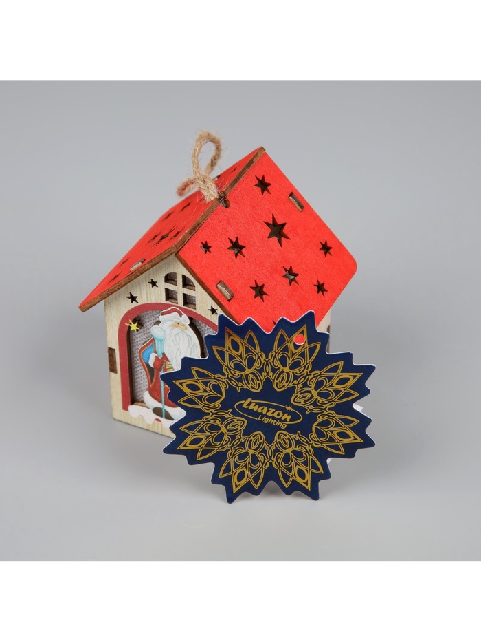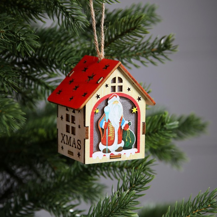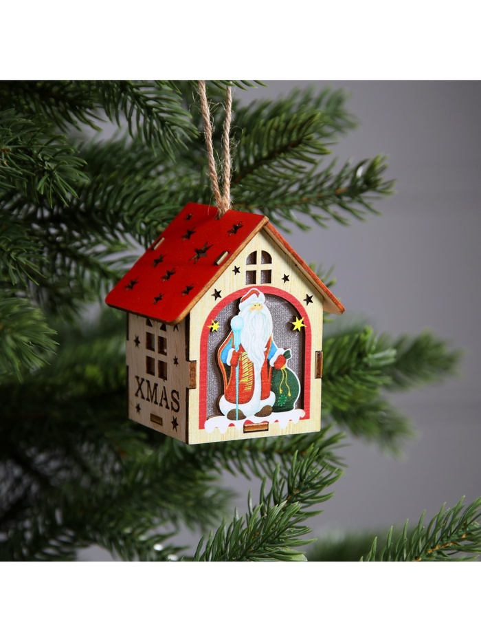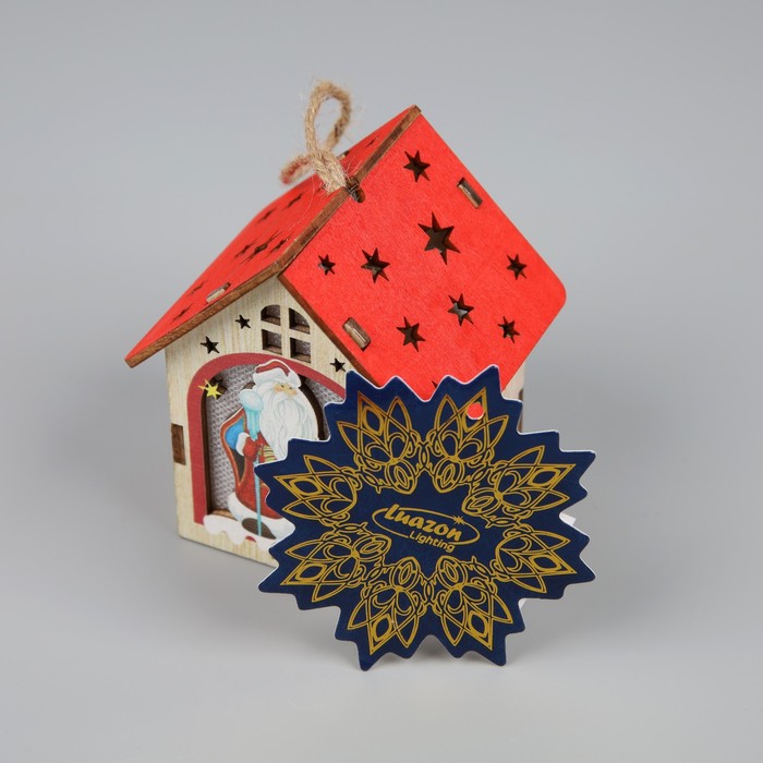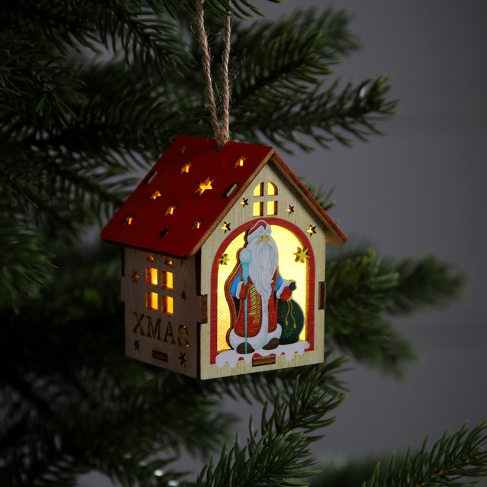 Ёлочная игрушка «Домик с Дедом Морозом», 8х7х6 см, 1 LED, от батареек, свечение тёплое белое — Характеристики