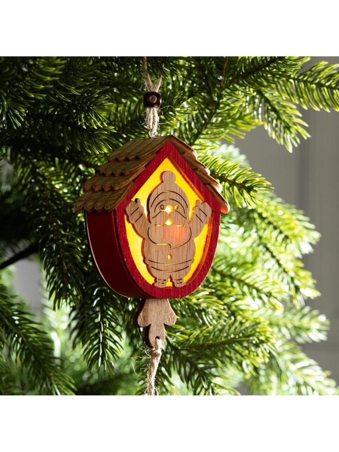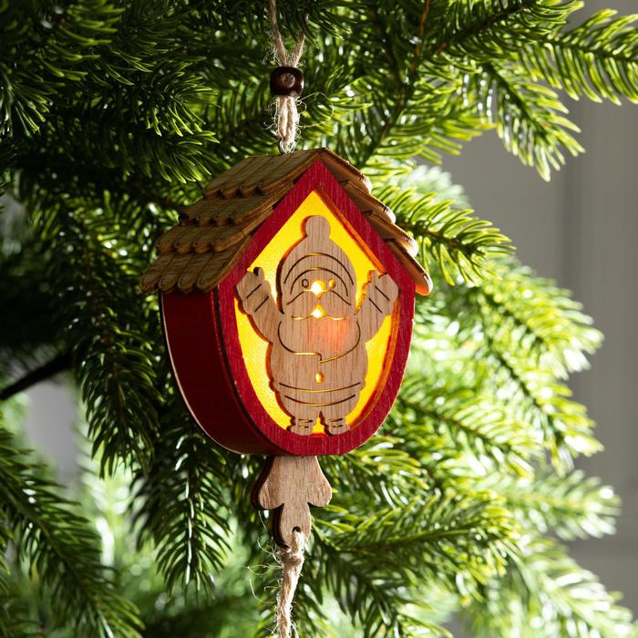 Ёлочная игрушка «Домик с Дедом Морозом», 9х8х4 см, от батареек, свечение тёплое белое — Характеристики