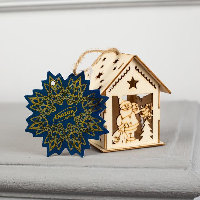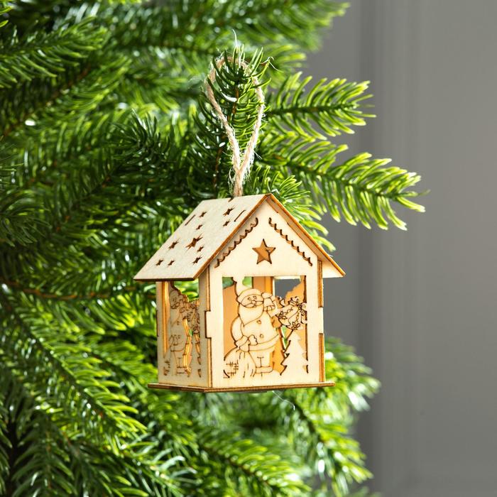 Ёлочная игрушка «Домик с Дедом Морозом и ёлкой», 7.5х6.5х6 см, от батареек, свечение тёплое белое