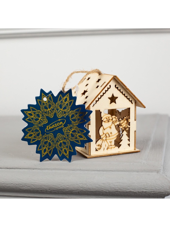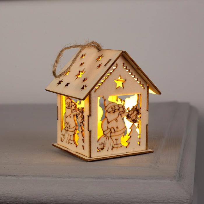 Ёлочная игрушка «Домик с Дедом Морозом и ёлкой», 7.5х6.5х6 см, от батареек, свечение тёплое белое — Характеристики