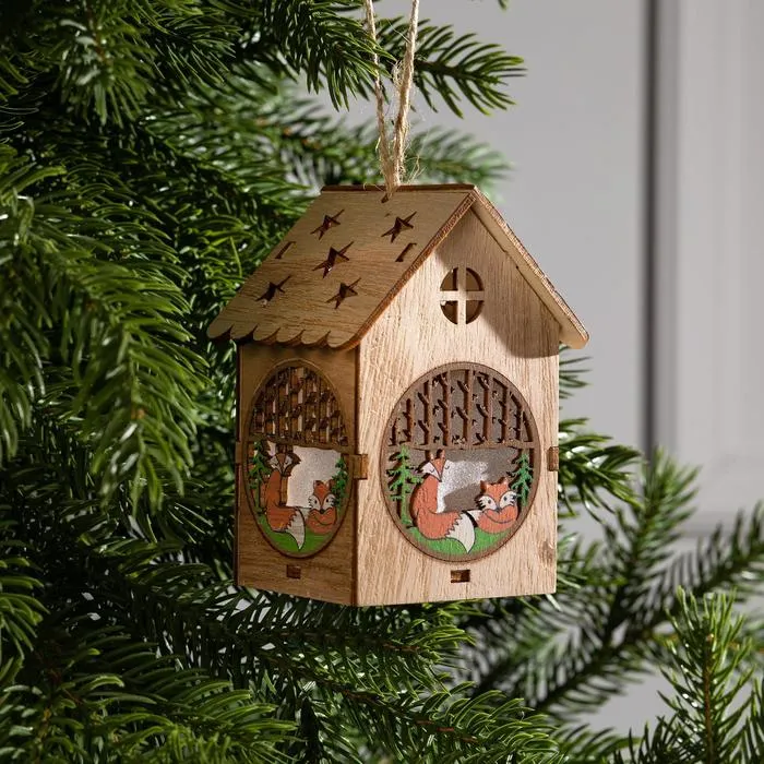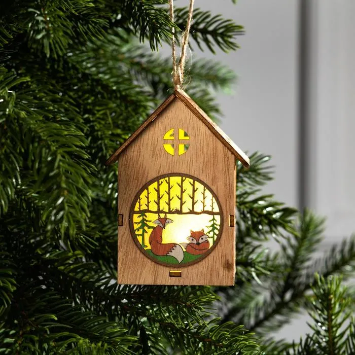 Ёлочная игрушка «Домик с лисой», от батареек, свечение тёплое белое