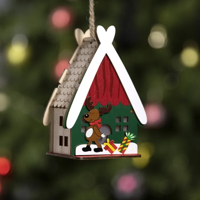 Изготовленный из дерева, домик с оленем освещает пространсво тёплым белым сиянием, создавая уютную и праздничную атмосферу. Благодаря встроенному светодиоду, работающему от батареек, игрушка может быть размещена в любом месте, будь то ветки ёлки или полки в вашем доме. Его размеры 7.7х11х6 см делают его удобным для размещения и достаточно заметным.