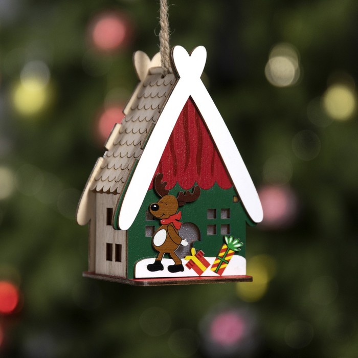 Ёлочная игрушка «Домик с оленем», 7.7х11х6 см, 1 LED, от батареек, свечение тёплое белое — Характеристики