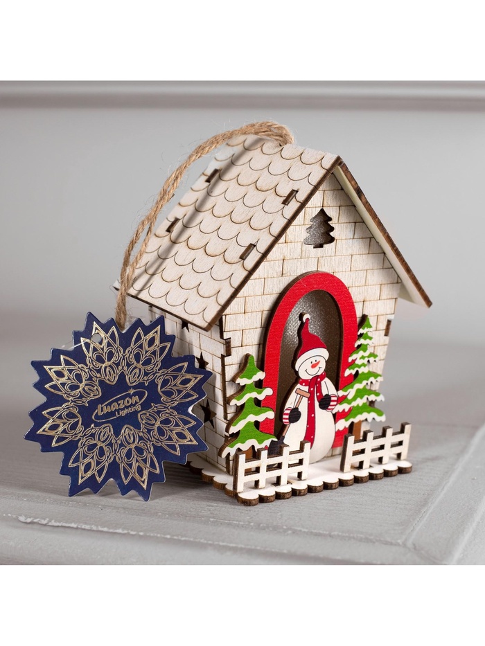 Ёлочная игрушка «Домик со снеговиком», 12 см, 1 LED, от батареек, свечение тёплое белое — Характеристики