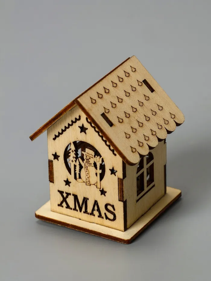 Ёлочная игрушка «Домик со снеговиком», 6х4.5х4.5 см, от батареек, свечение тёплое белое — Характеристики