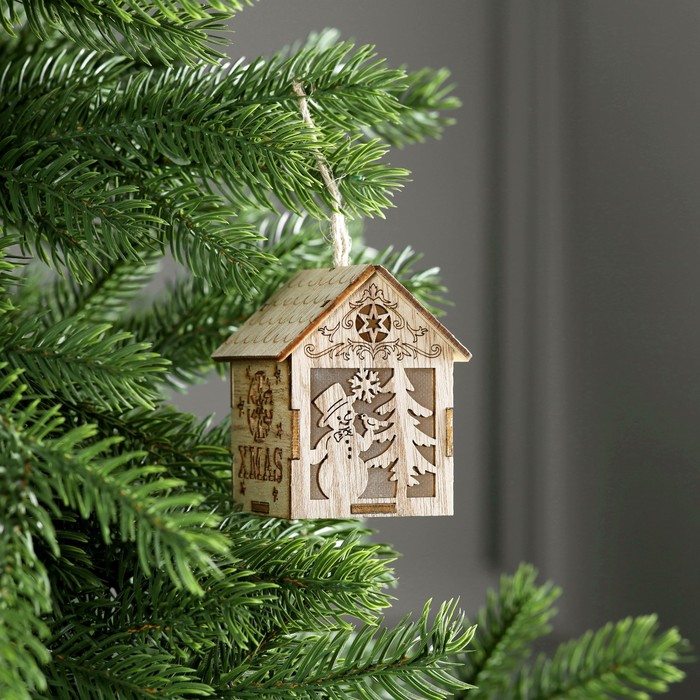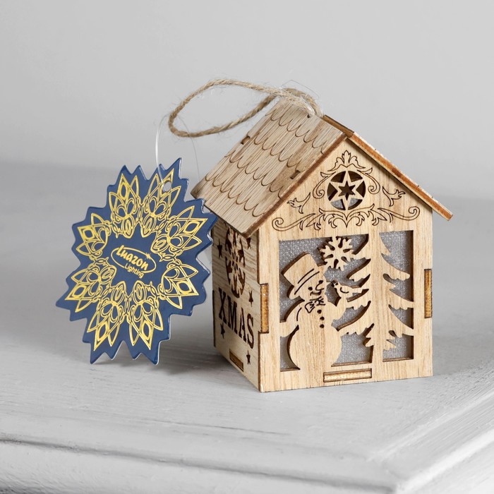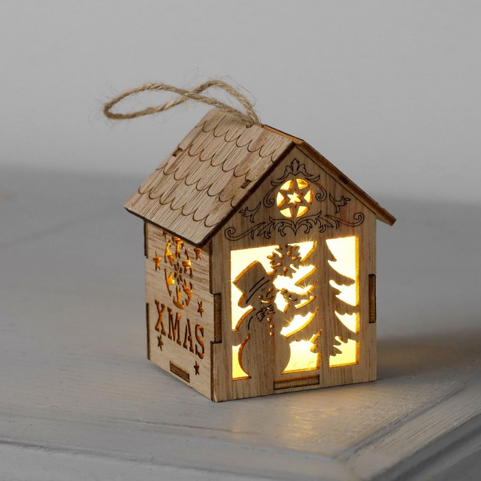 Ёлочная игрушка «Домик со снеговиком», 8х6.5х6 см, от батареек, свечение тёплое белое