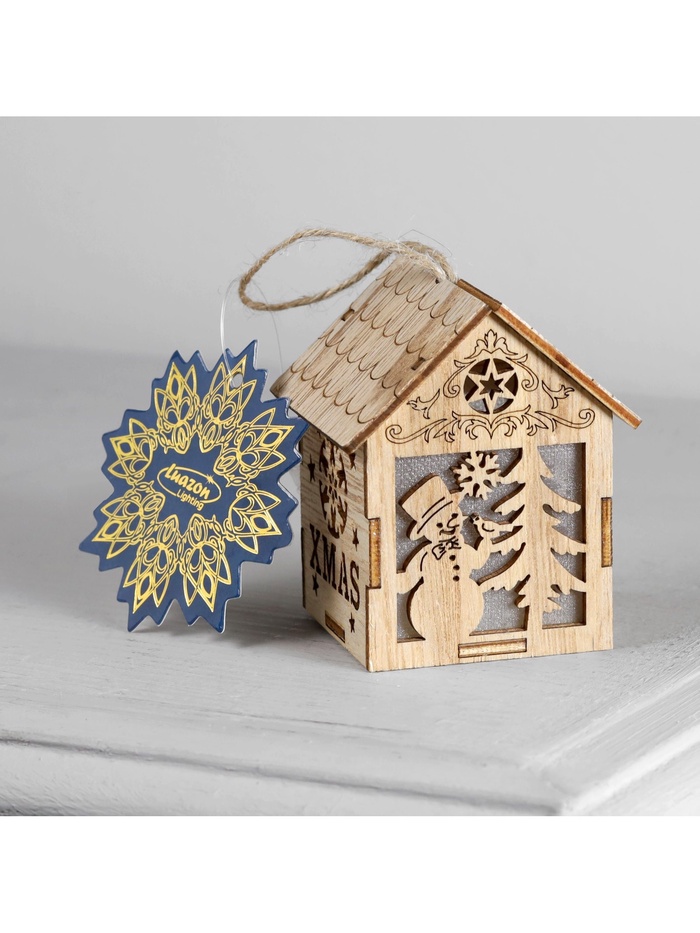 Ёлочная игрушка «Домик со снеговиком», 8х6.5х6 см, от батареек, свечение тёплое белое — Характеристики