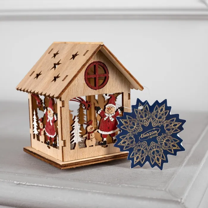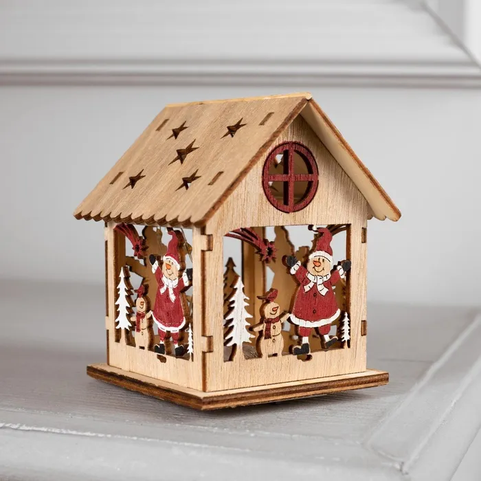 Ёлочная игрушка «Домик со снеговиком», от батареек, свечение тёплое белое — Характеристики
