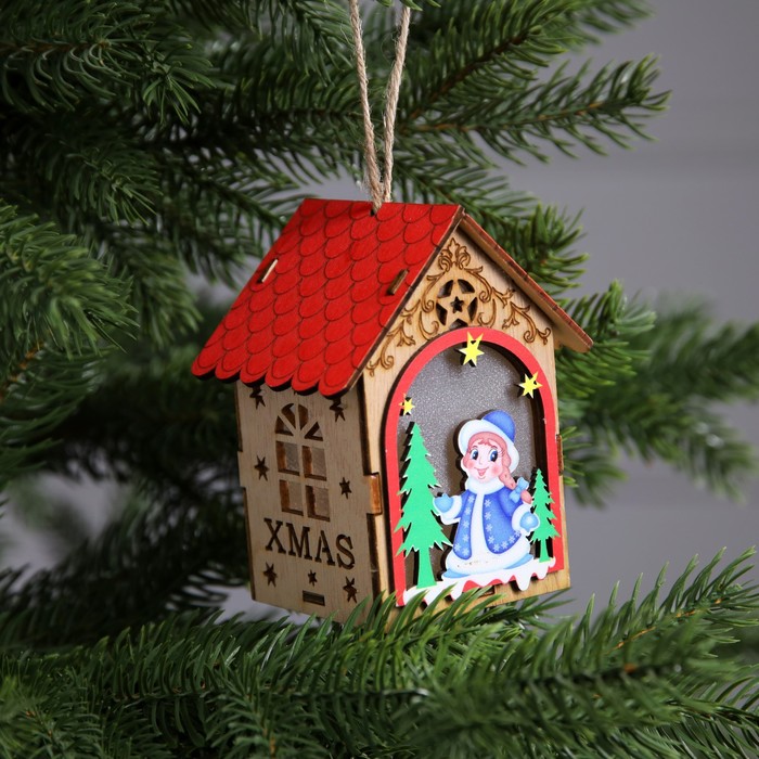 Ёлочная игрушка «Домик со Снегурочкой», 11х8.5х7.5 см, 1 LED, от батареек, свечение тёплое белое — Характеристики