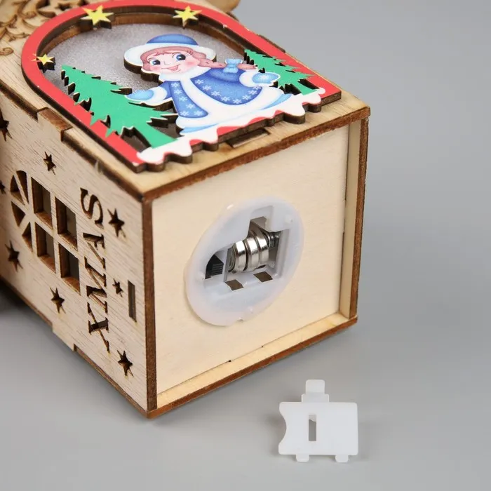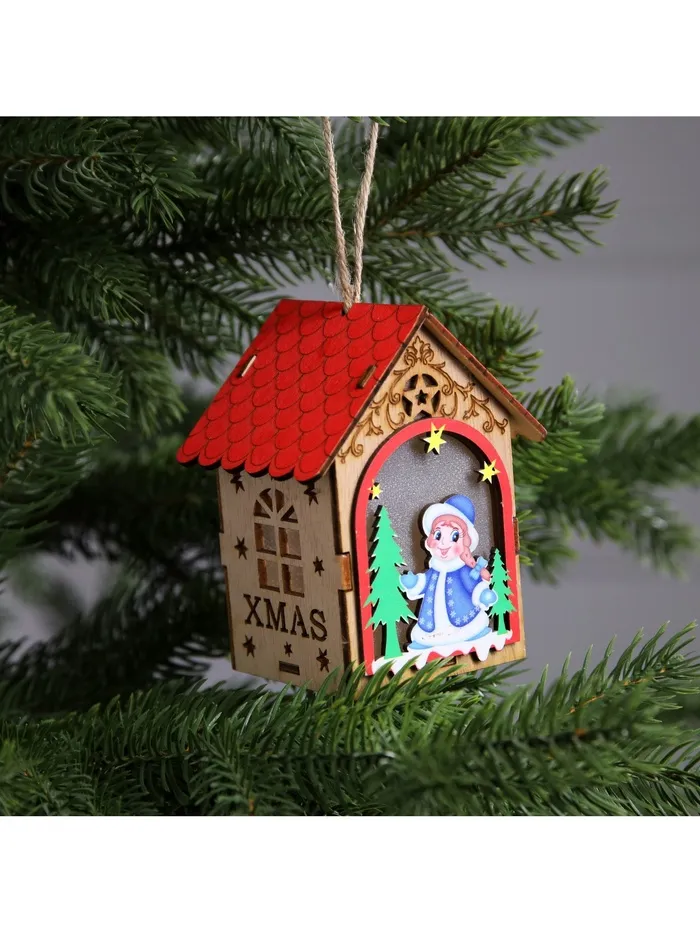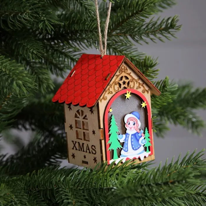Изготовленный из дерева, этот домик со Снегурочкой освещает пространство тёплым белым свечением, создавая атмосферу праздника и сказки. Благодаря встроенному светодиоду, работающему от батареек, домик будет мягко светиться, добавляя волшебства в ваш интерьер. Размеры 11x8.5x7.5 см делают его идеальным для размещения на ёлке или в качестве декоративного элемента на полке.