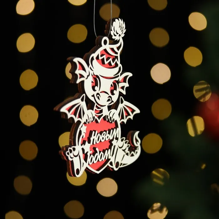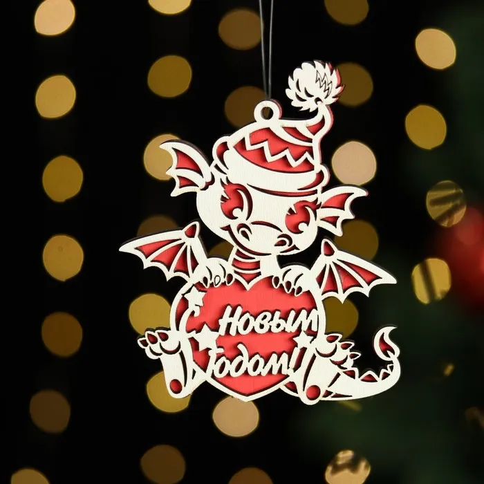 Ёлочная игрушка «Дракон с новым годом», дерево, двухслойный, красный