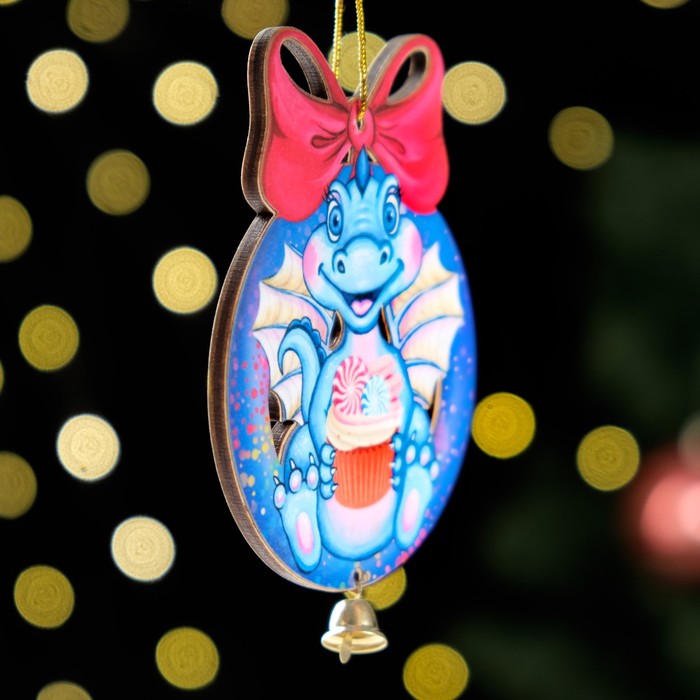 Ёлочная игрушка «Дракон в синем шарике», ламинация, 73×95 мм — Характеристики
