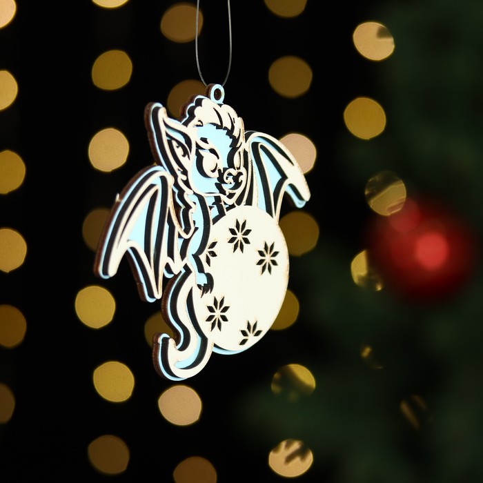Ёлочная игрушка «Дракоша», дерево, двухслойный, голубой