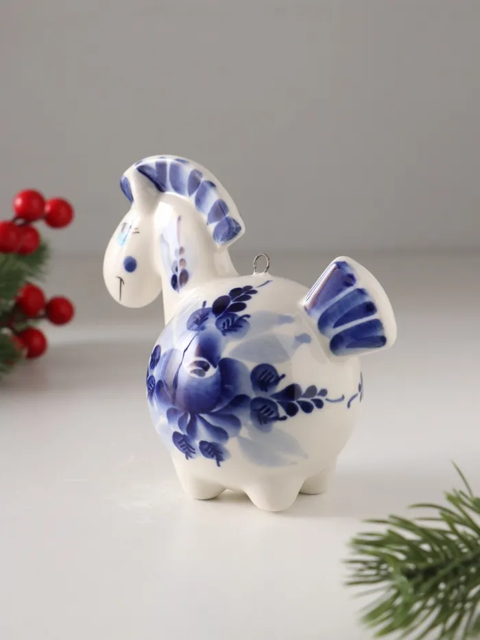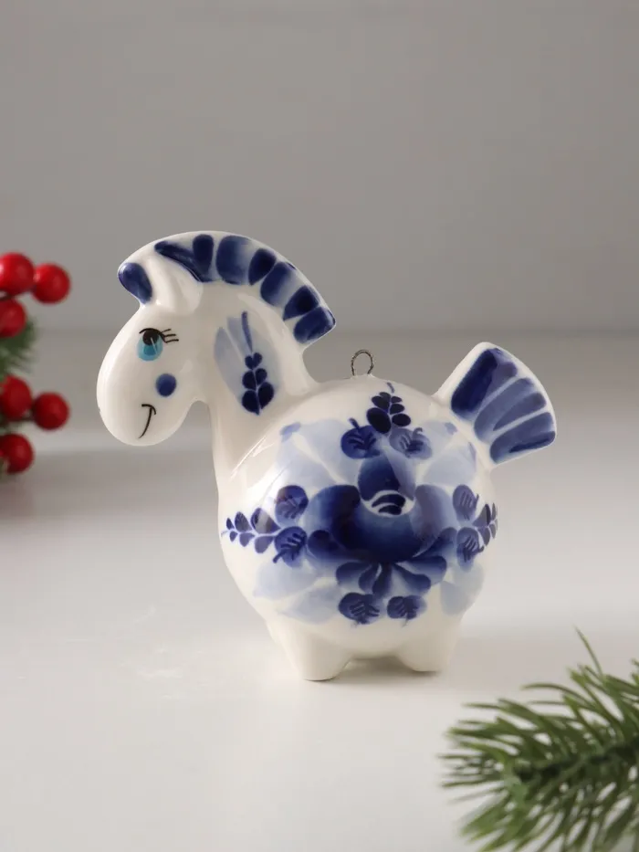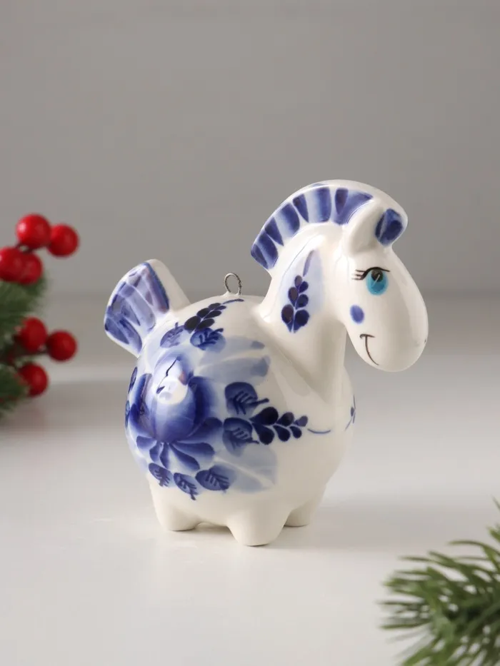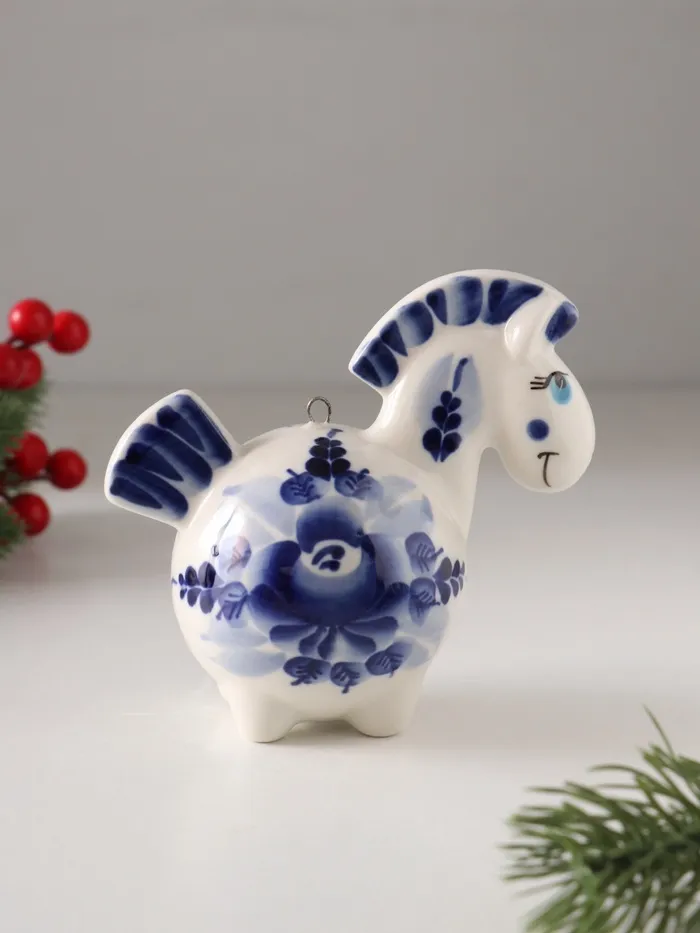 Эта фарфоровая лошадка — не просто ёлочное украшение, а маленькое произведение искусства, которое наполнит ваш дом теплом ручной работы и духом новогоднего волшебства. Пусть она принесёт в ваш дом удачу и радость, став символом наступающего года.