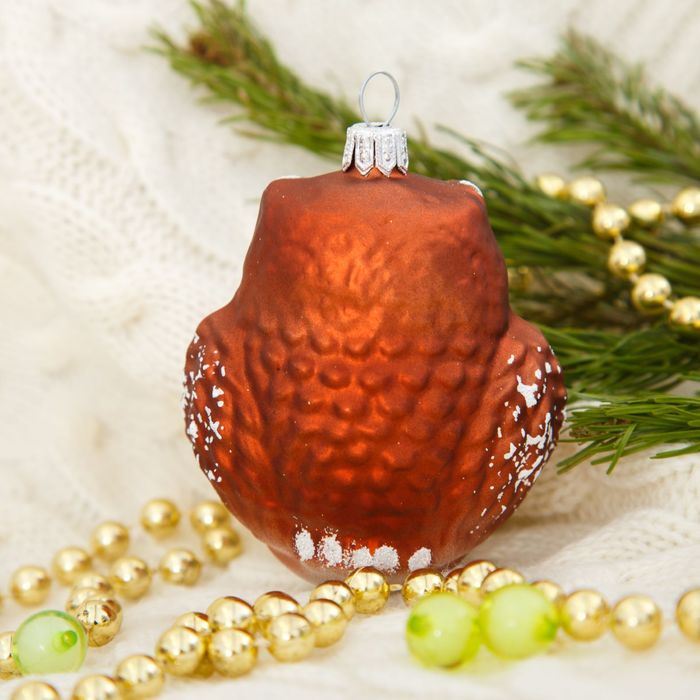 Филин для ёлки высотой 7,3 см добавит уют в новогодний декор. Коричневый цвет и рисунок в советском стиле с фьюжн создают уникальный образ.