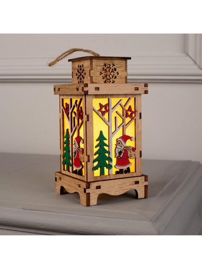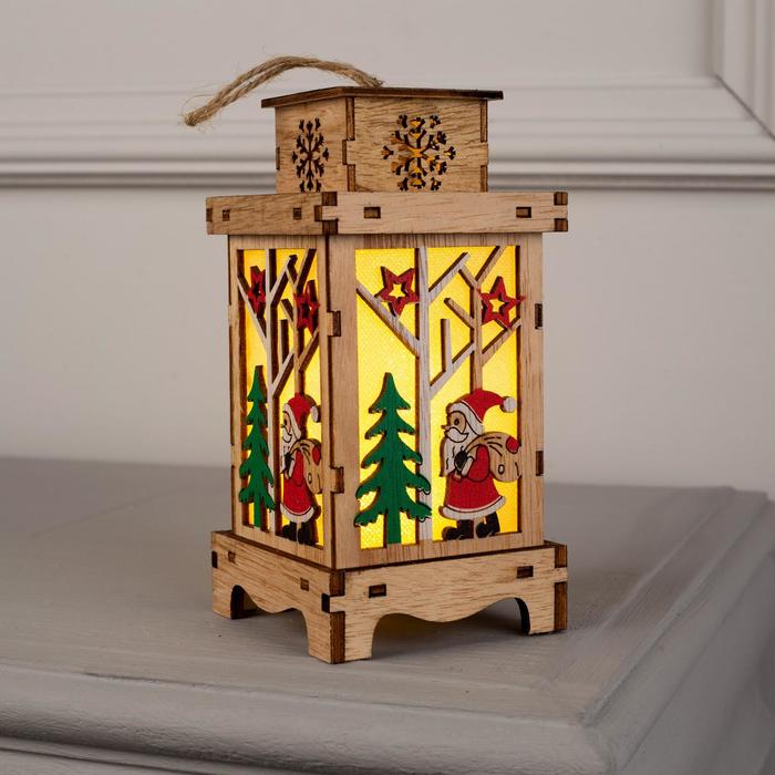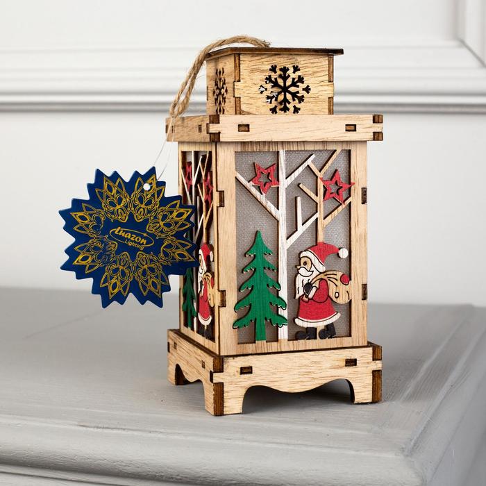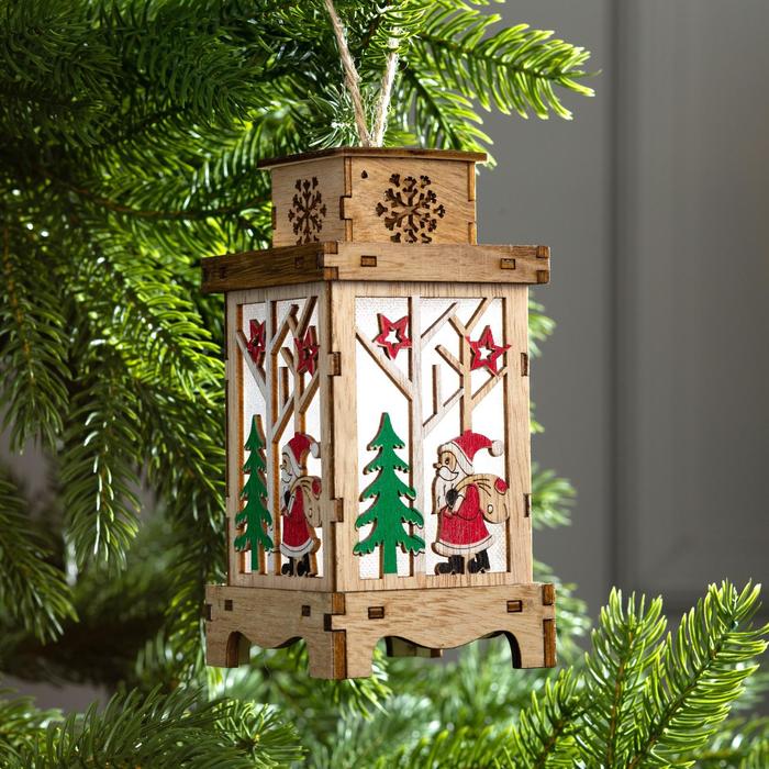 Ёлочная игрушка «Фонарь с Дедом Морозом», 16х8х8 см, от батареек, свечение тёплое белое — Характеристики