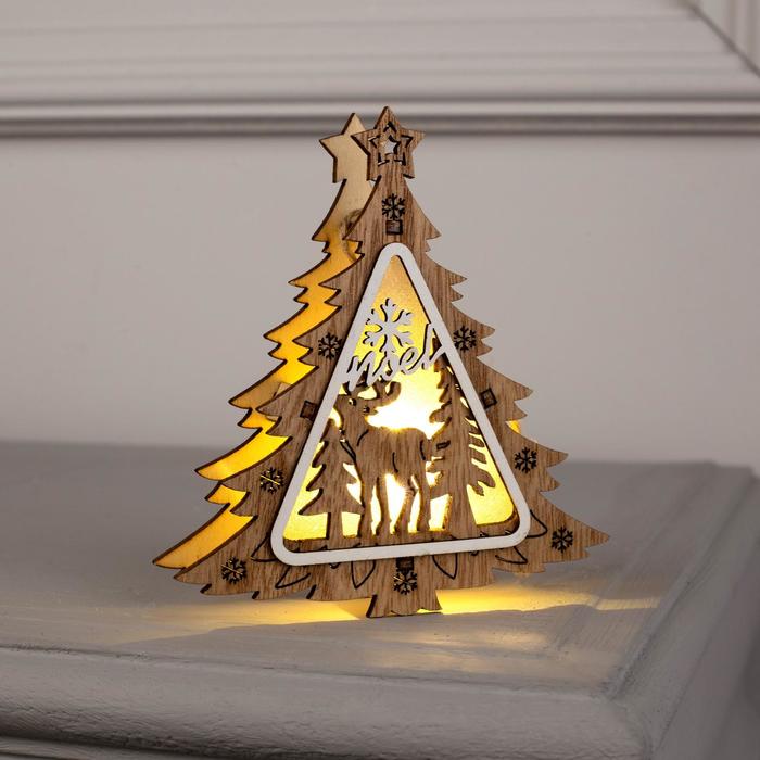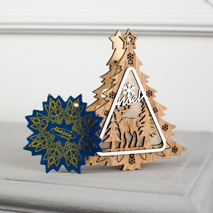 Ёлочная игрушка «Ёлочка с оленем», 11х11х2 см, от батареек, свечение тёплое белое — Характеристики