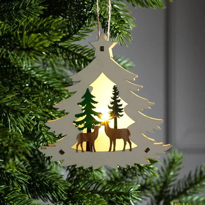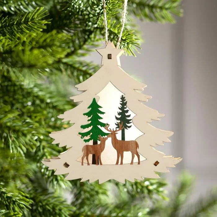 Ёлочная игрушка «Ёлочка с оленями», от батареек, свечение тёплое белое — Характеристики