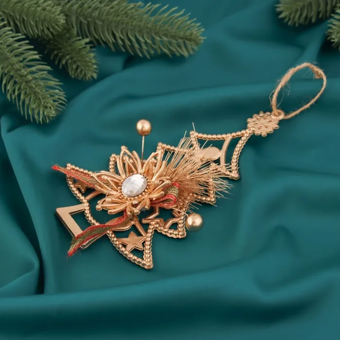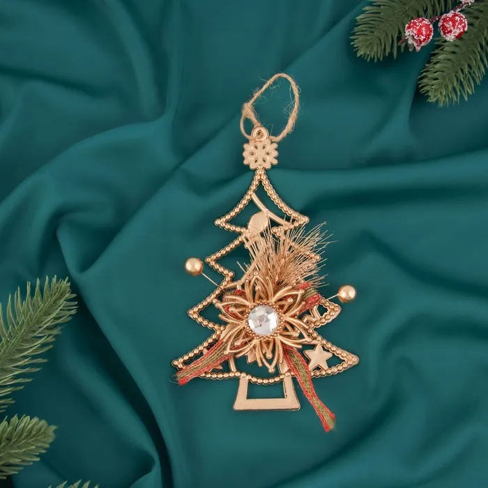 Ёлочная игрушка "Ёлочка с цветком" 16х10 см, золото