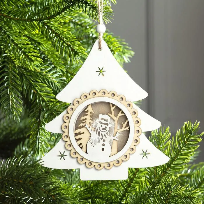 Ёлочная игрушка «Ёлочка со снеговиком», от батареек, свечение тёплое белое — Характеристики
