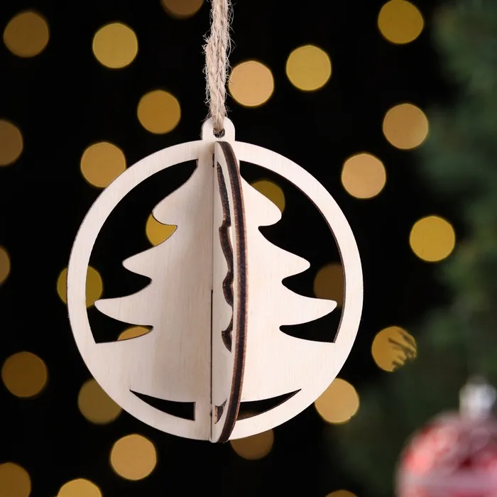 Елочная игрушка деревянная «Зимняя ель» МИКС