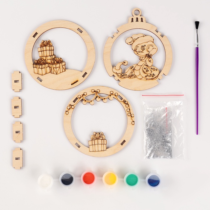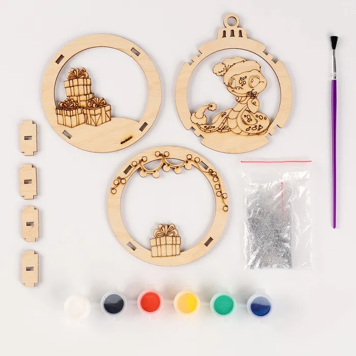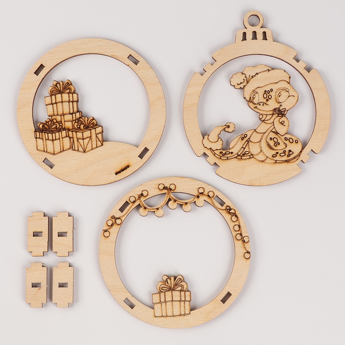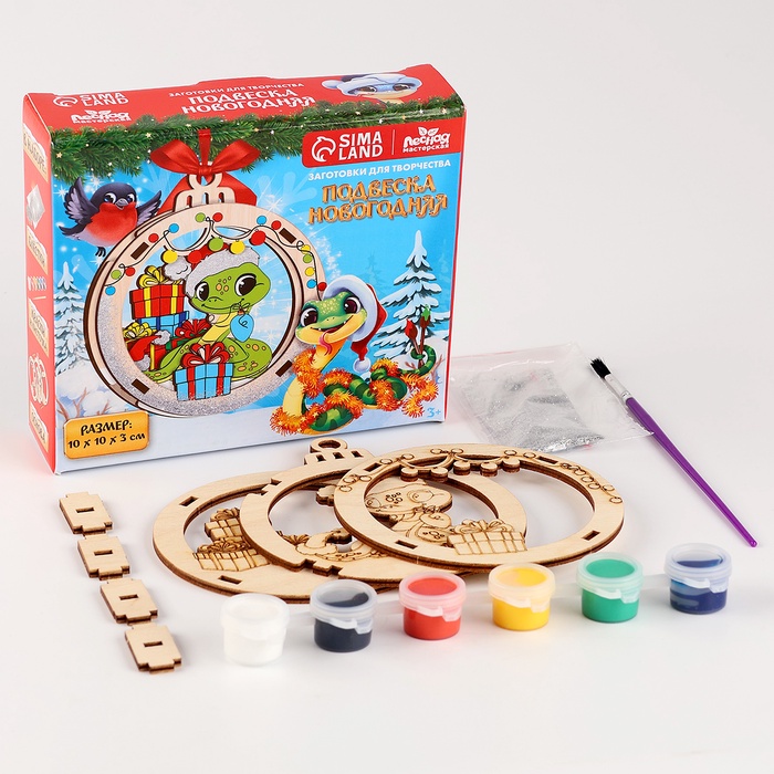 Ёлочная игрушка из дерева своими руками на новый год «Подарок от змейки», набор для творчества, символ 2025 — Характеристики