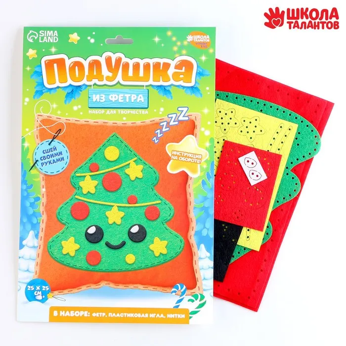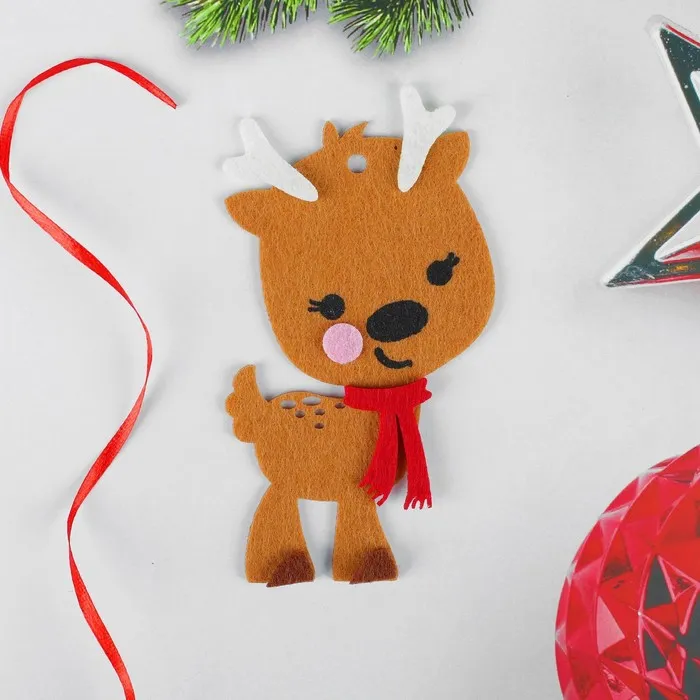 - Скрепите детали между собой с помощью клея или прошейте нитками. При создании украшения вы можете ориентироваться на изображение готовой поделки на упаковке.