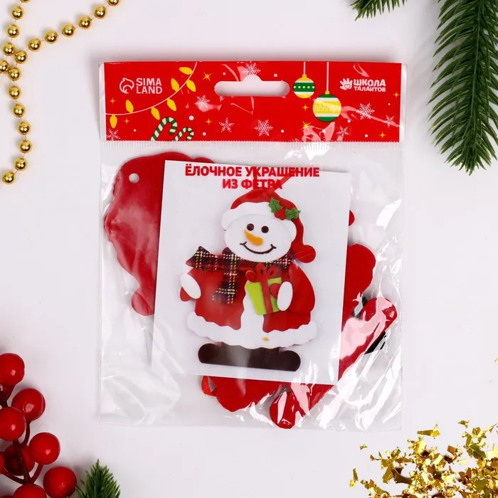 Ёлочная игрушка из фетра «Снеговик с подарком», набор для творчества, своими руками — Характеристики