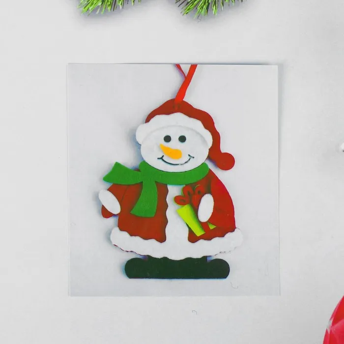 Ёлочная игрушка из фетра «Снеговик с подарком», своими руками — Характеристики