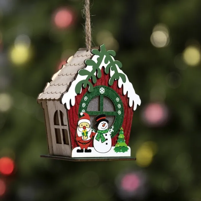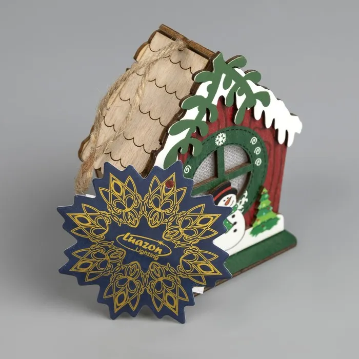 Ёлочная игрушка «Избушка со снеговиком», от батареек, свечение тёплое белое — Характеристики