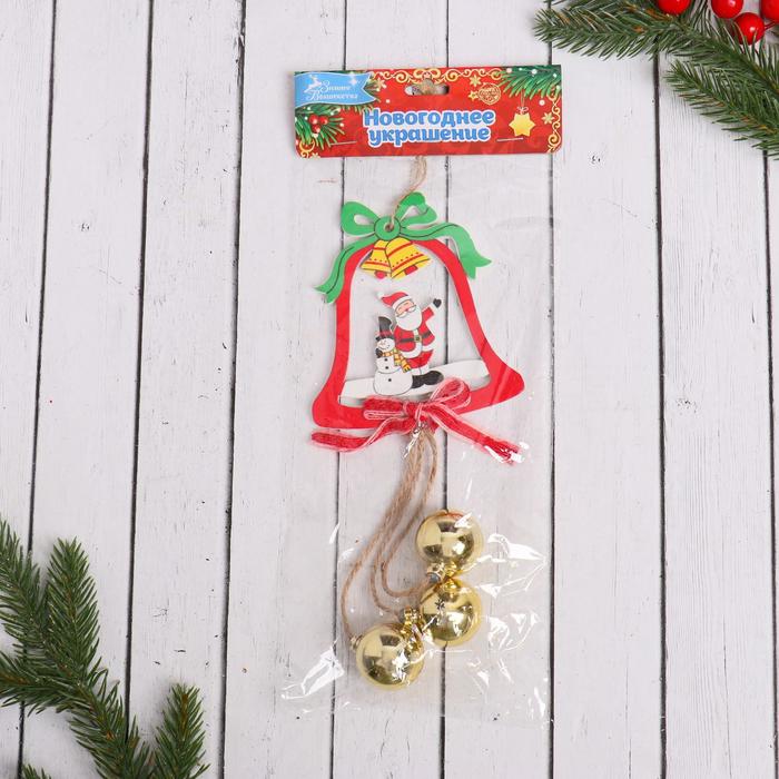 Ёлочная игрушка "Колокольчик с шариками" Дед Мороз и снеговик 9,5х25 см