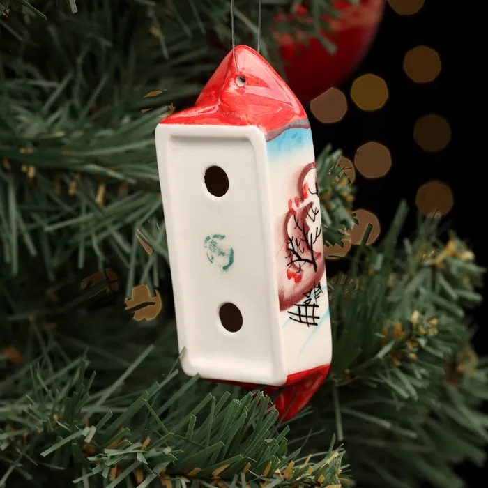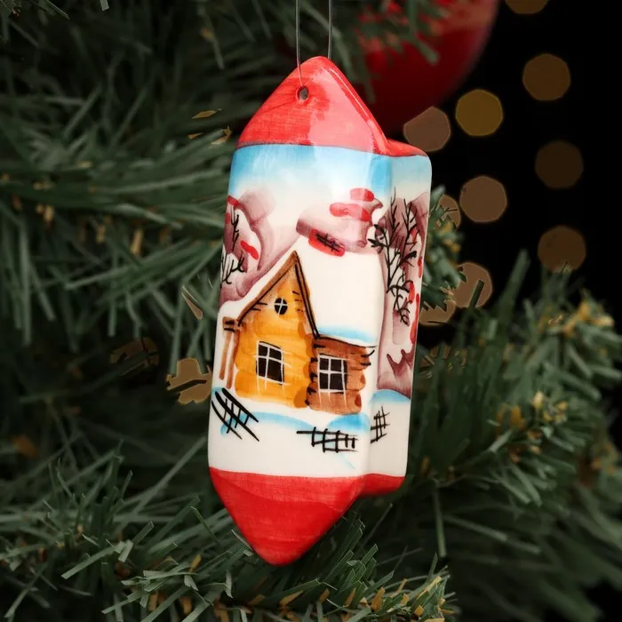 Ёлочная игрушка «Конфета Зима», красная, авторская роспись, 10 см, фарфор — Характеристики