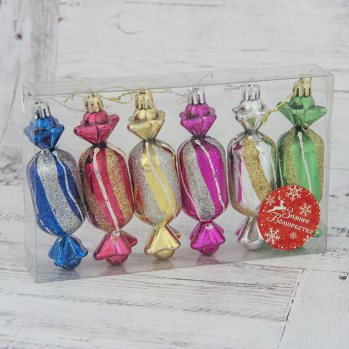 Ёлочная игрушка "Конфеты" (набор 6 шт) 3х10,5 см, МИКС — Характеристики