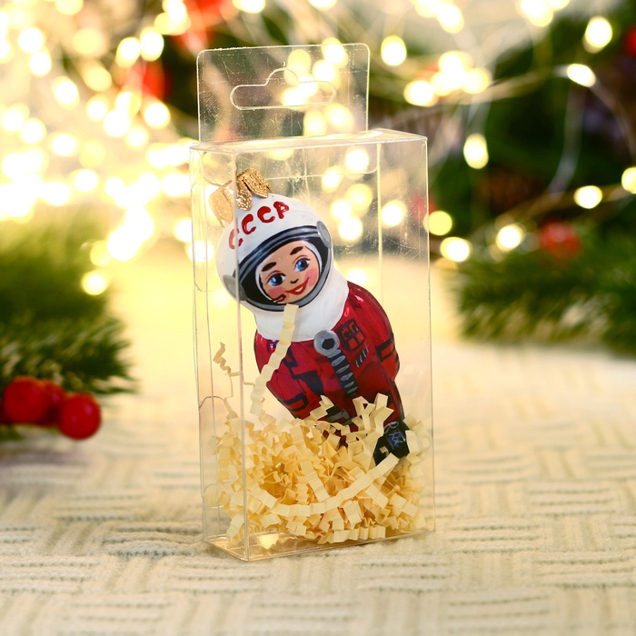 Стеклянная фигурка космонавта высотой 9 см с резным узором объединяет скандинавскую лаконичность и советскую космическую эстетику. Минималистичный дизайн в стиле фьюжн напоминает о легендарных достижениях космонавтики, сохраняя современное звучание. Разноцветные акценты добавляют динамики, превращая украшение в символичный элемент новогоднего декора.